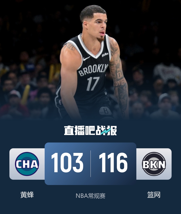上半場,黃蜂率先發力打出10-4的開局,籃網內外開花迅速反超,鮑爾傳射建功,波特高效輸出予以回應,次節雙方展開對攻,黃蜂輪番沖擊內線頻頻得手,波特聯手克洛尼飆中4記三分還以顏色,半場戰罷雙方打成59平。下半場,兩隊繼續纏斗,籃網多點開花,薩隆和鮑爾相繼三分穿針奪回優勢,末節黃蜂后勁不足,籃網趁勢打出12-0的攻擊波獲得兩位數領先,黃蜂大勢已去無力回天。最終,籃網116-103擊敗黃蜂,結束了自己的4連敗。